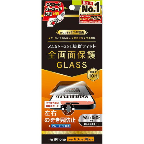 トリニティiPhone 16 Pro のぞき見防止 保護GTR-IP24M3-GLS-LPVCC日本メーカー・AGC社製強化ガラス採用 ケースに干渉しない安心サイズのプロテクター のぞき見防止・ケースに干渉しない安心サイズ・左右180度からの視線をシャットアウト・バーコードリーダー決済対応・ブルーライトを低減して目が疲れにくい・日本メーカー、AGC社製の強化ガラス採用・気泡ゼロの「バブルレス」仕様